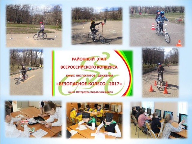 В ГБУ ДО ЦДЮТТ Кировского района Санкт-Петербурга прошли районные соревнования Всероссийского конкурса юных инспекторов движения «Безопасное колесо - 2017». В соревнованиях прияли участие 52 школьника из 13 образовательных учреждений. В этом году, из-за погодных условий, Конкурс проходил в два этапа: в апреле проверялись теоретические знания ПДД, правила поведения пассажиров и оказания первой медицинской помощи, а в мае практические навыки вождения велосипеда.