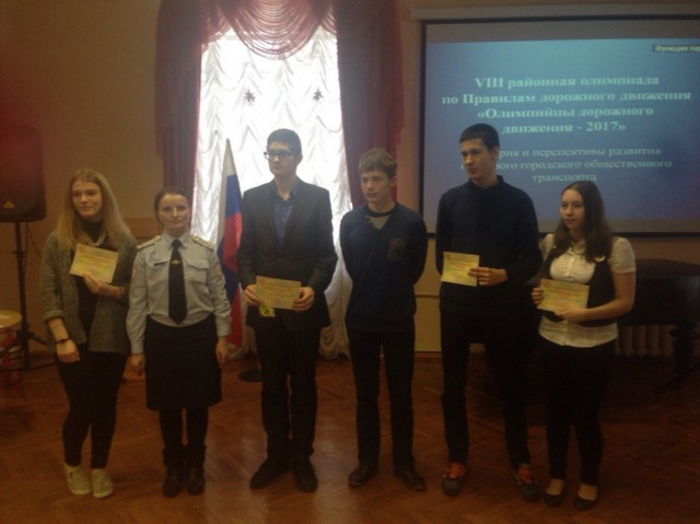 9 февраля 2017 года в ЦДЮТТ Кировского района Санкт-Петербурга состоялась ежегодная VIII олимпиада по ПДД для учащихся 9-11 классов «Олимпийцы дорожного движения-2017», в которой приняли участие 78 старшеклассников из 16 ОУ района. Тема олимпиады в этом году: «История развития городского наземного общественного транспорта в Санкт-Петербурге». Все участники смогли продемонстрировать свои знания по Правилам дорожного движения при выполнении конкурсных заданий «Автодром», «Презентация» и «Дорожные знаки».