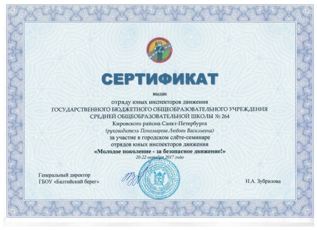 С 20 по 22 октября 2017 года на базе детского образовательно-оздоровительного лагеря «Солнечный» ГБОУ «Балтийский берег» проходил слёт – семинар отрядов юных инспекторов движения, посвященного 45-летию создания отрядов ЮИД «Молодое поколение - за безопасное движение!».