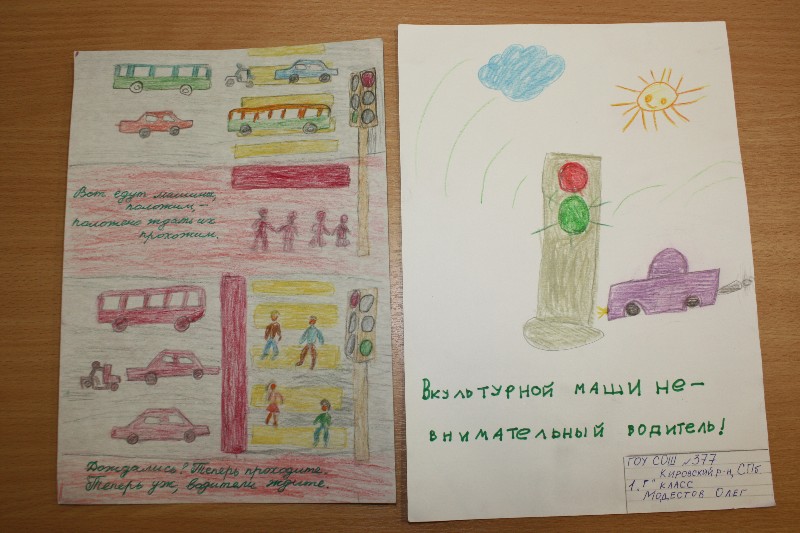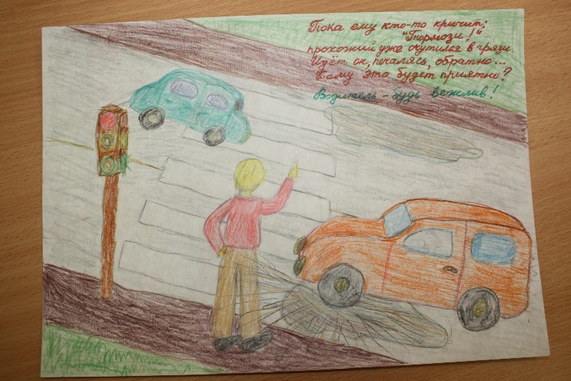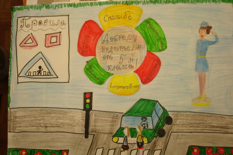 Второй год в октябре по инициативе отряда ЮИД проходит школьный конкурс открыток «Вежливому водителю от внимательного пешехода!» Смирнова Анастасия и Антонова Вероника (ученицы 5-а класса) стали победителями 2011 года. К рисунку прилагается стихотворное послание: