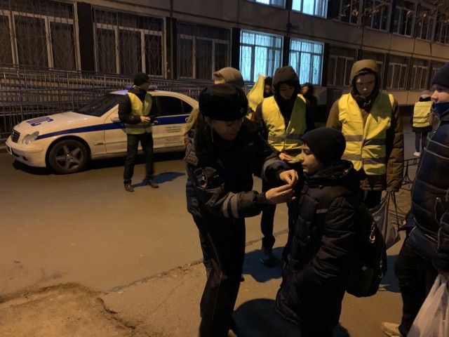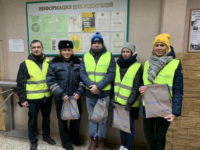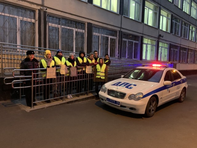 Сотрудники ОГИБДД Кировского района (Конюхова Юлия Борисовна и Костюков Василий Николаевич), волонтеры и ЮИДовцы нашей школы (юные инспекторы движения) проводили акцию по профилактике детского дорожно-транспортного травматизма и безопасности дорожного движения «#видимостьна5».