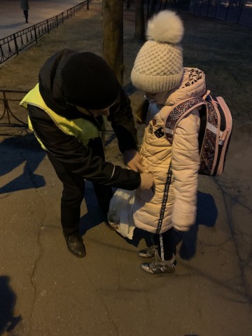 Разделившись на группы, чтобы не один ребёнок, следующий в школу не остался без внимания, сотрудники ОГИБДД Кировского района, волонтеры и ЮИДовцы приветствовали учащихся, выдавали им световозвращатели и объясняли почему необходимо их прикрепить себе на одежду или сумку.