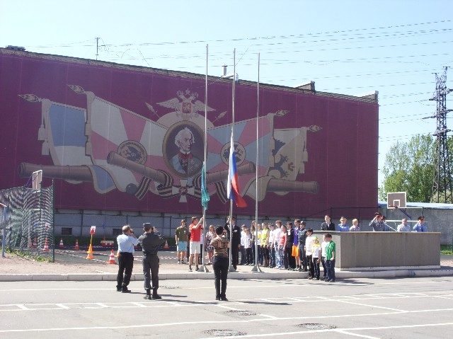 Большая ответственность легла и на плечи суворовцев, ведь именно они были главными помощниками - кураторами школьных команд. Мероприятию предшествовало знакомство участников, экскурсионная программа по училищу с посещением музея С-Пб СВУ МВД и, конечно же, торжественное открытие Слёта, с поднятием флага Районного отряда ЮИД.
