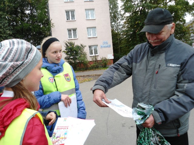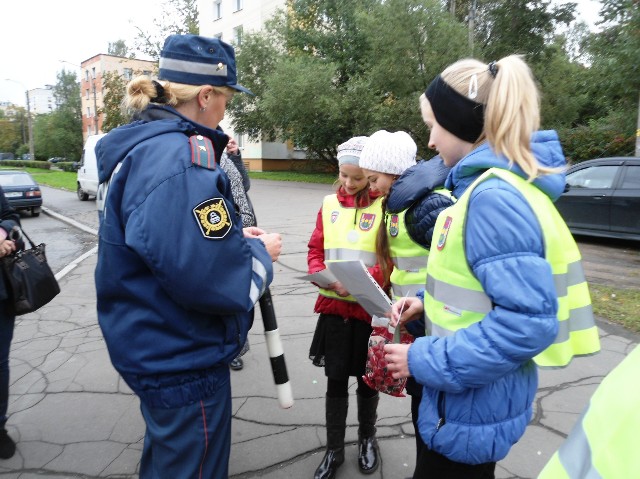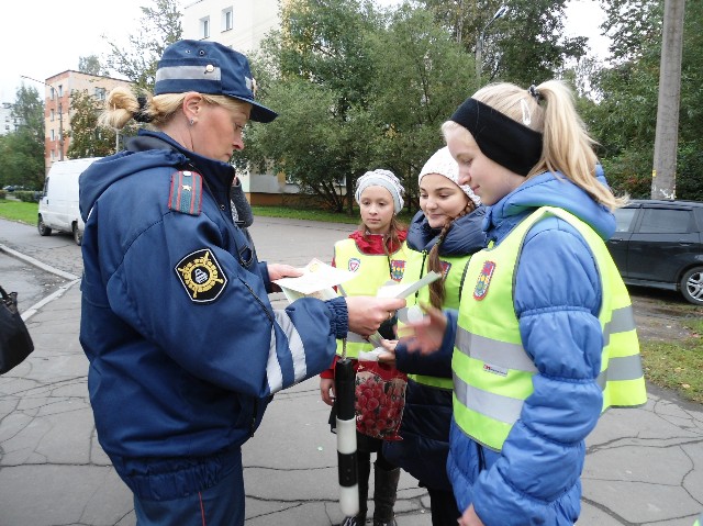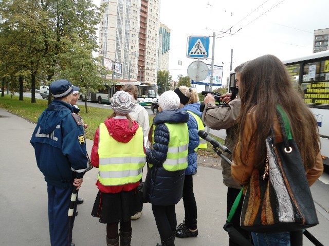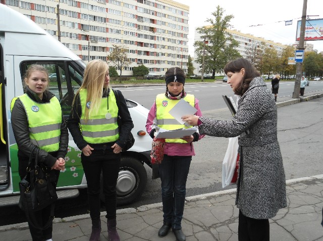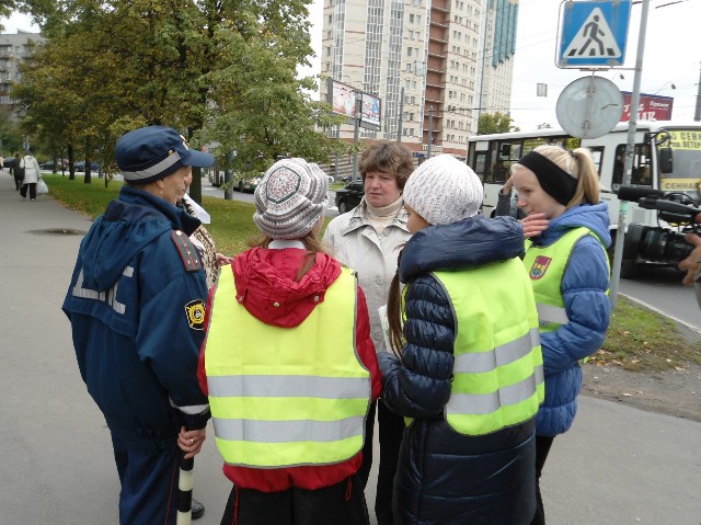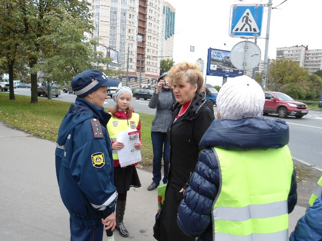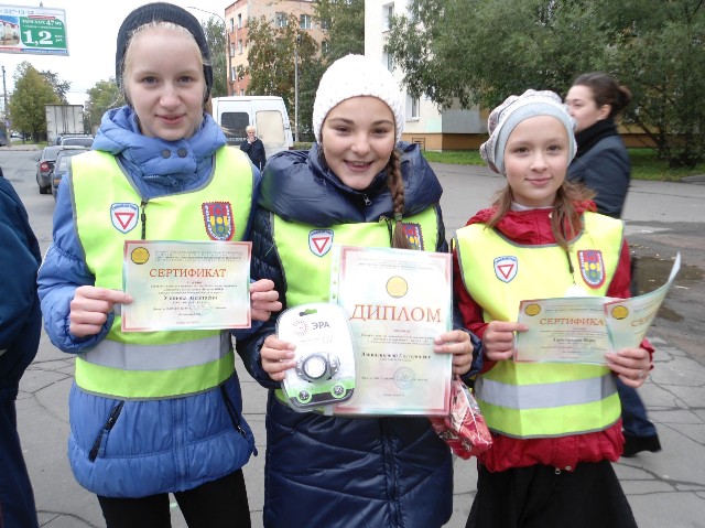 Победители конкурса листовок Вавиленкова Екатерина (ГБОУ СОШ № 264, 5-в класс), Виноградова Татьяна (ГБОУ СОШ № 479, 6-а), Васильева Ксения (БОУ СОШ № 392, 5-а), Сыроежкина Анна (ГБОУ Гимназия № 248, 10-а) и другие ребята смогли познакомиться с работой инспектора ГИБДД. Все участники были разделены на две патрульные группы, которые наблюдали за движением пешеходов и водителей. В этот раз нарушителей среди пешеходов оказалось больше. Только за один час было замечено 12 нарушителей среди пешеходов и 2 среди водителей. Юные инспекторы проводили с ними разъяснительные беседы и каждому выдавали детские рисунки с просьбой соблюдать правила дорожного движения. По итогам рейда все его участники получили в подарок световозвращатели, а победители конкурса листовок были награждены дипломами и призами.
